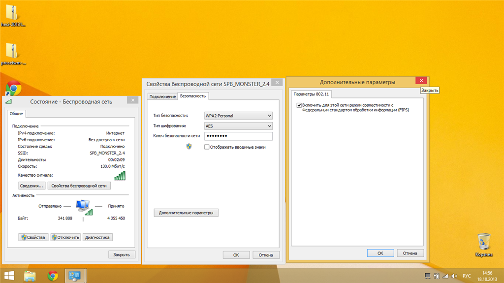 Для Windows 10 может потребоваться включить для этой сети режим совместимости с Федеральным стандартом обработки информации (FIPS). Как это сделать, показано на картинке.