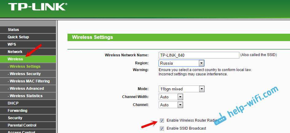 Вот так настройки Wi-Fi выглядят на роутерах TP-Link: