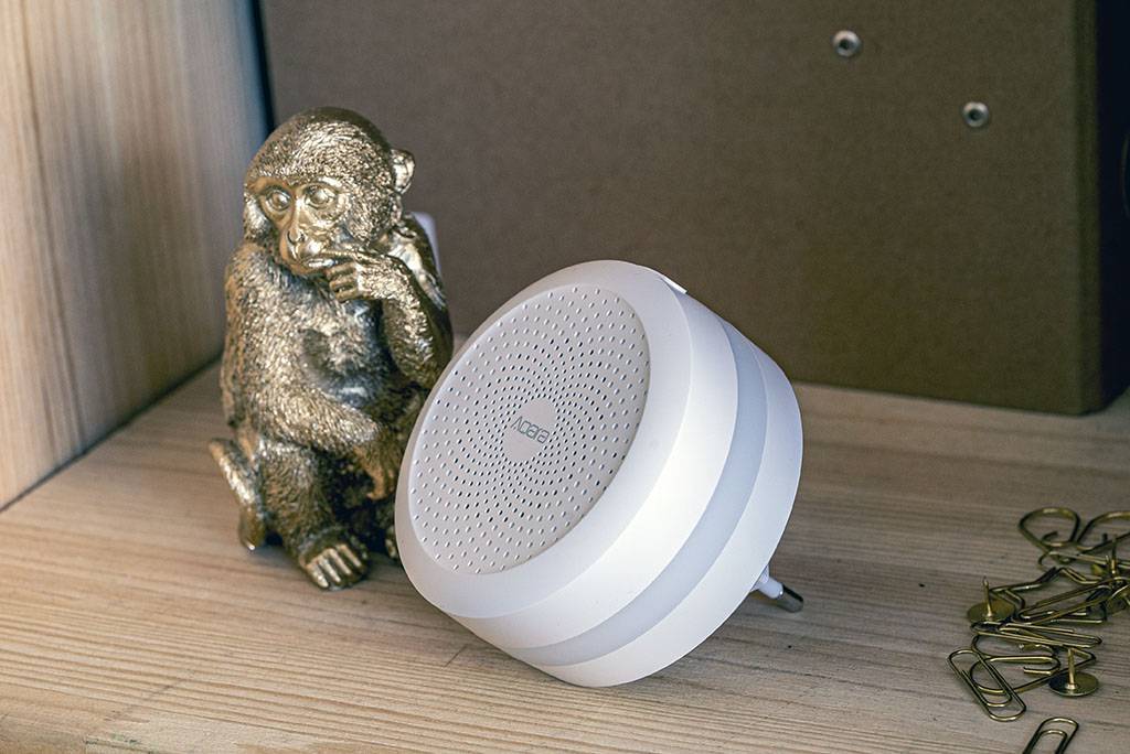Сам хаб достаточно низкий — менее 4 см, — что позволяет выглядеть ему в домашнем интерьере аккуратно. Однако в продаже только версия с европейской вилкой, которая делает необходимым использование переходника и, как следствие, увеличение высоты устройства. Обойтись без него также можно, но придется установить китайскую розетку, присутствующую в одном из версий наборов Mi Homekit.