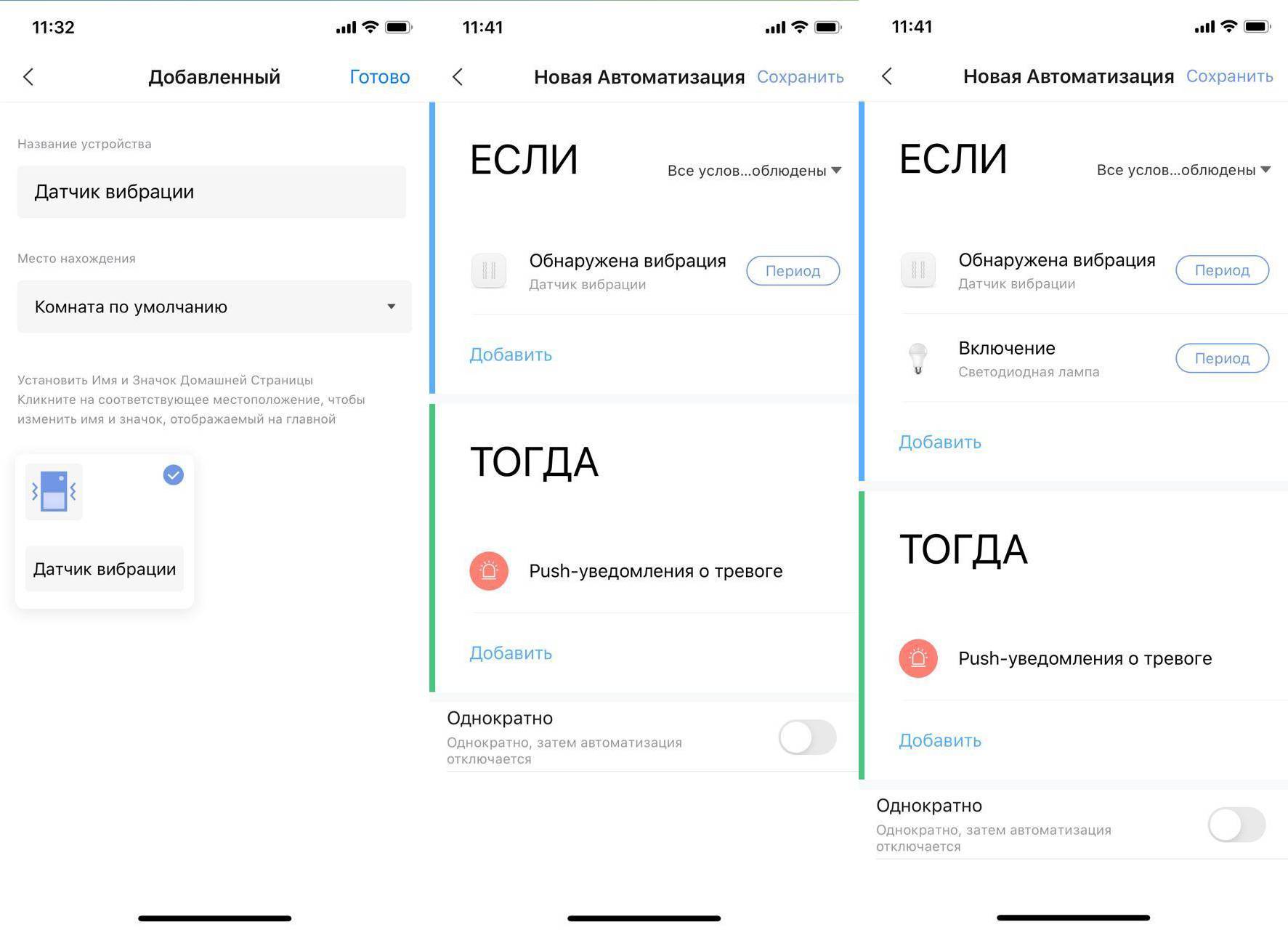 Сценарий использования можно создать после подключения необходимых устройств, создав новую карточку в разделе приложения «Автоматизация».