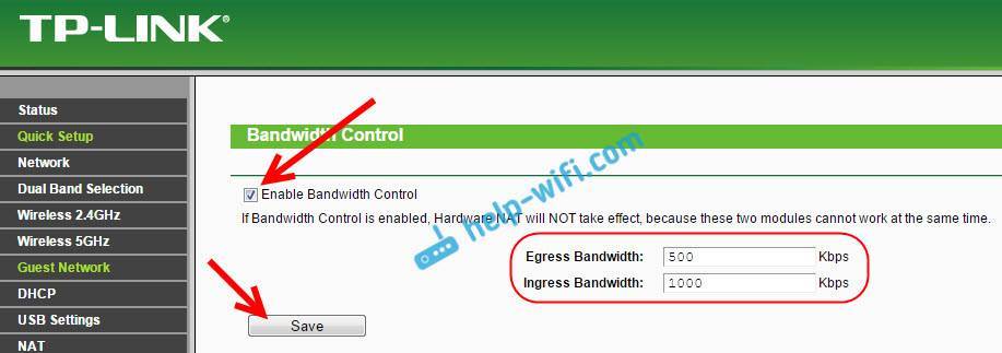 Все, нажимаем внизу страницы на кнопку Save, и наша Wi-Fi сеть для гостей начнет работать. Я даже не выделял на скриншоте все настройки, а то стрелок получается очень много Что бы увеличить картинку нажмите на нее.
