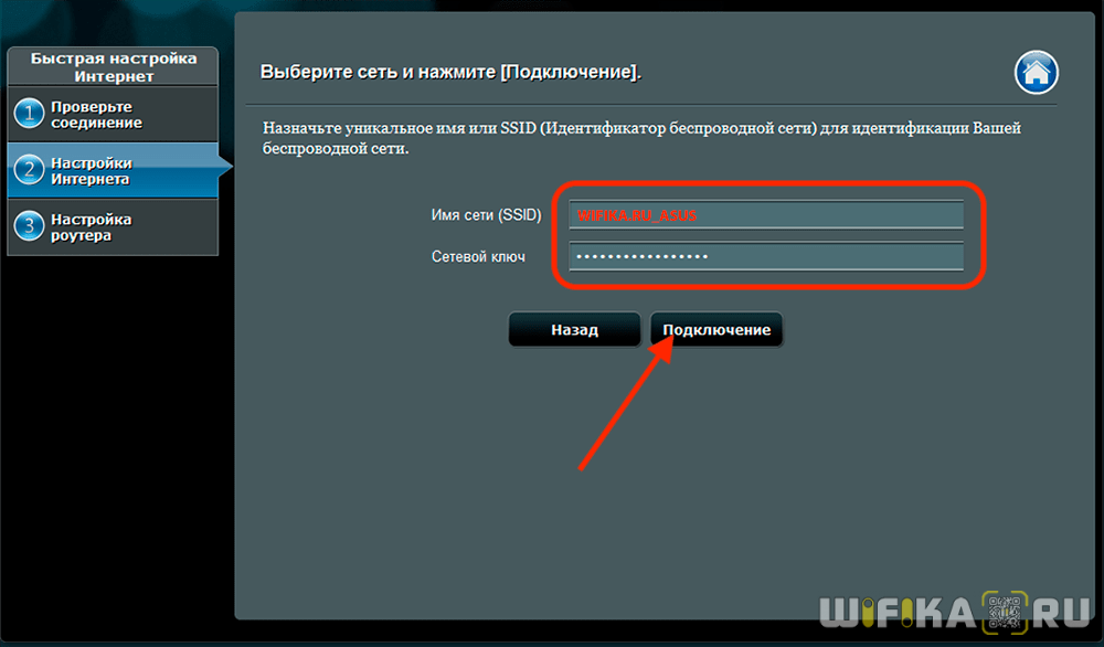 - Ввести логин и защитный ключ интернет-провайдера. Появится уведомление о необходимости придумать пароль для Wi-Fi сети.