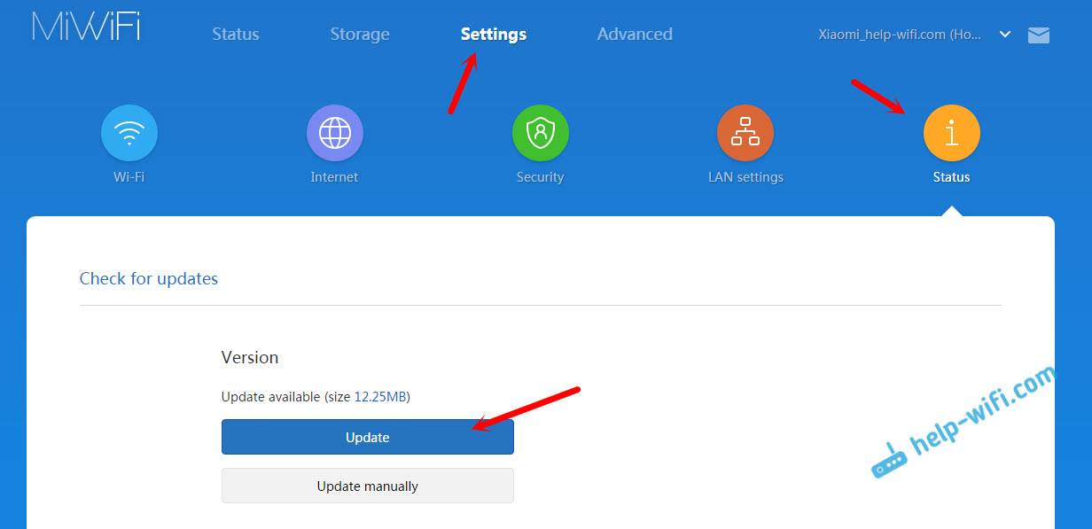 На Ми Вай-Фай можно установить английский язык, скачав альтернативную версию прошивки: в меню настроек (3 пункт слева в самом верху) выберите «Состояние системы» (первый значок справа).
