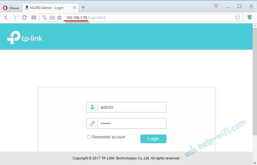 Введите логин и пароль для входа в панель управления TP-LINK NC200