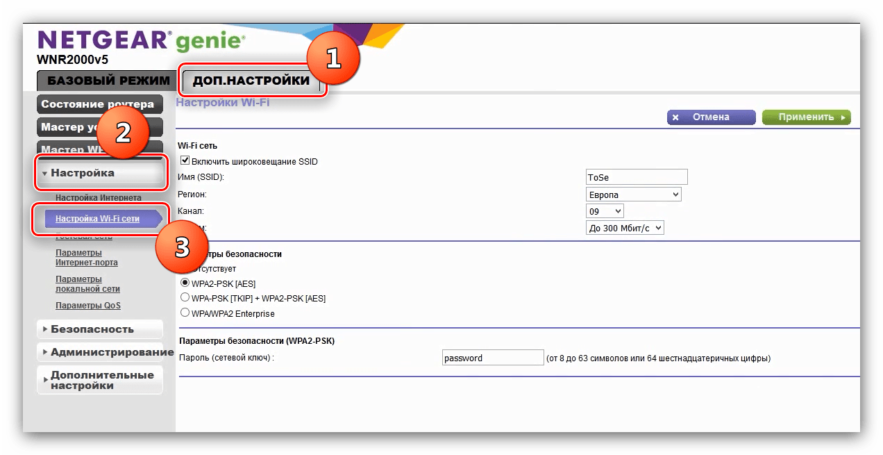 На прошивке Netgear genie опции располагаются по адресу «Доп. настройки»