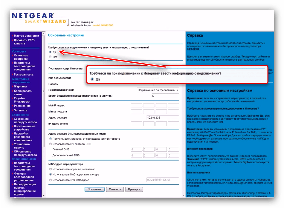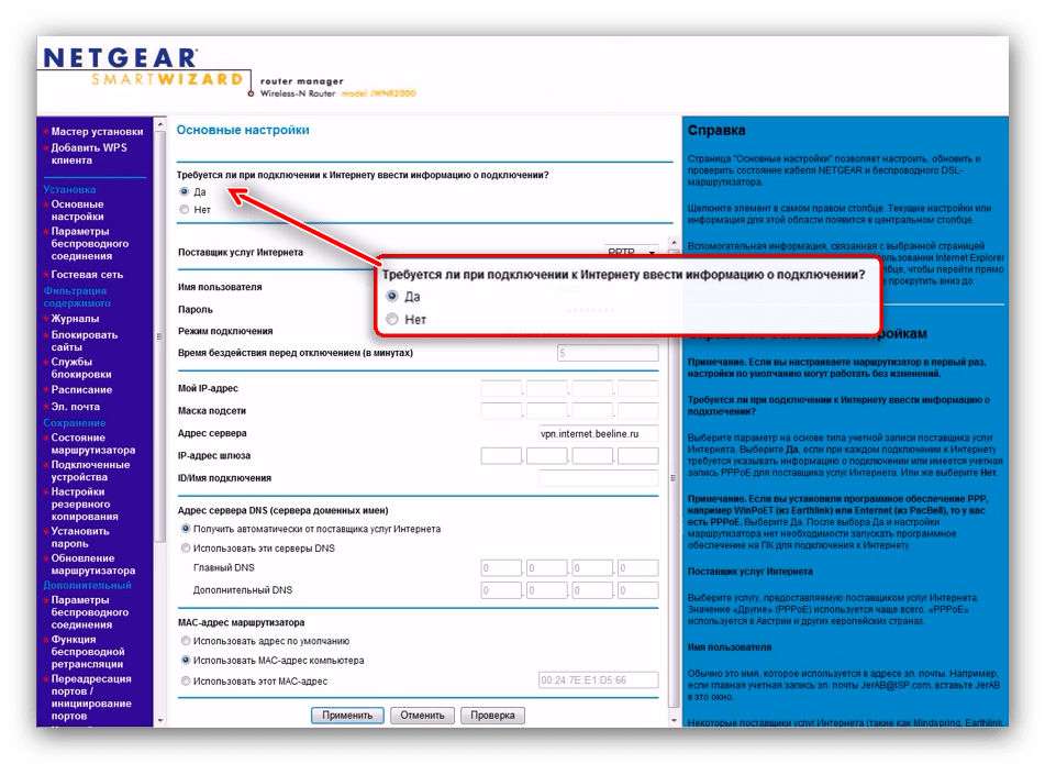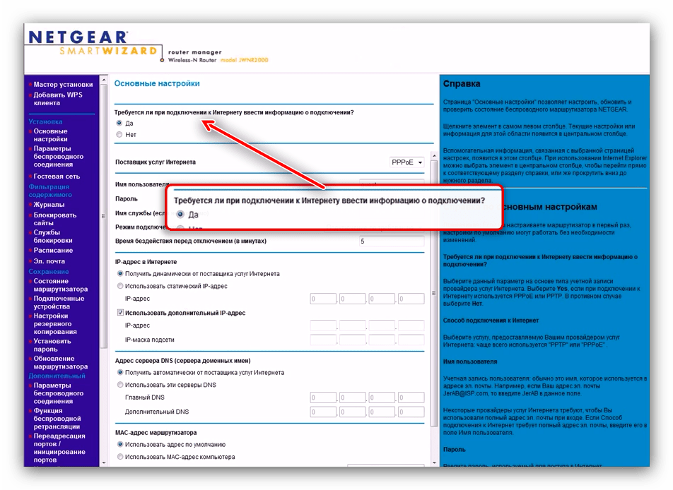 Соединение по протоколу PPPoE у NetGear N300 настраивается так: