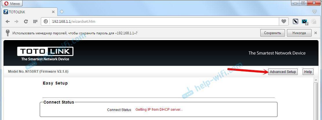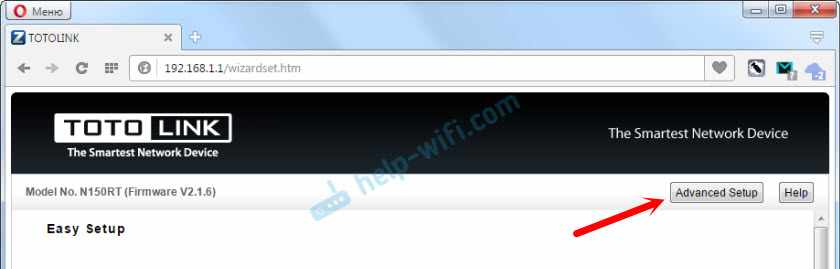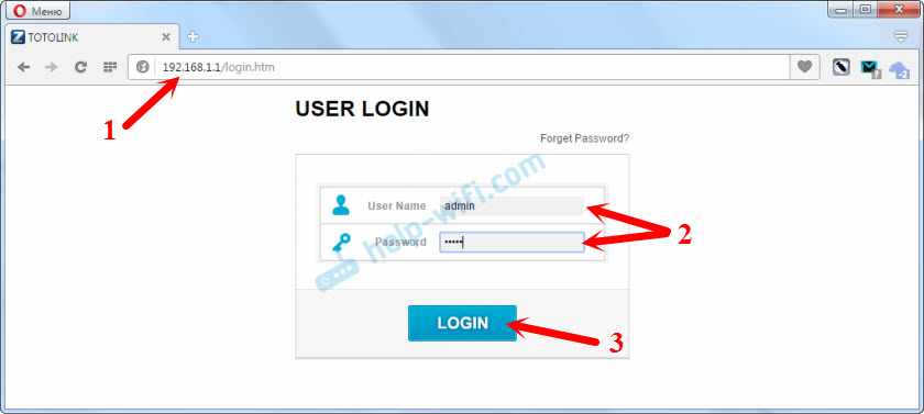 Вход в настройки Totolink по 192.168.1.1
