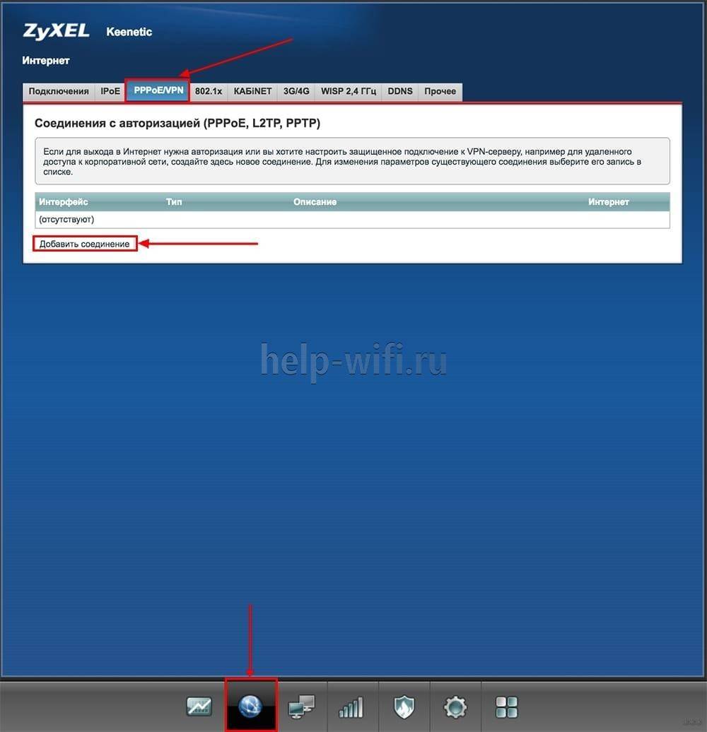 - Теперь откройте вкладку «PPPoE/VPN». Нажмите «Добавить соединение».