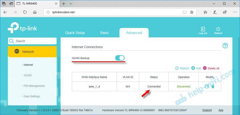 Обратите внимание на пункт «3G/4G Backup». Его можно выключить или включить. Я так понимаю, что эта настройка позволяет использовать соединение через SIM-карту как резервное