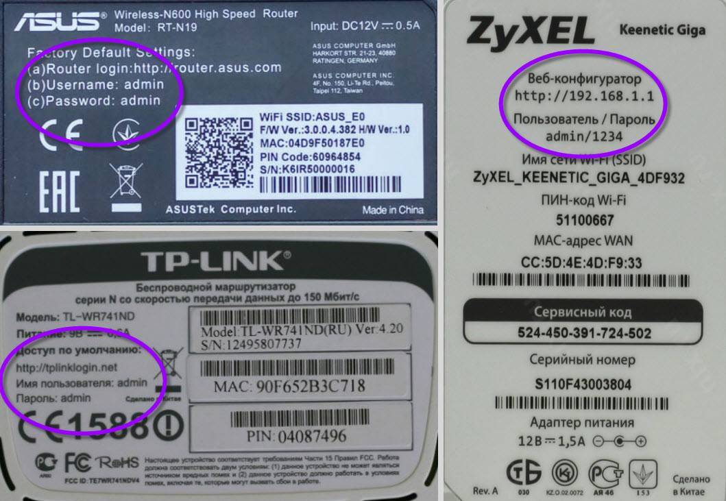логин/пароль на задней панели роутера