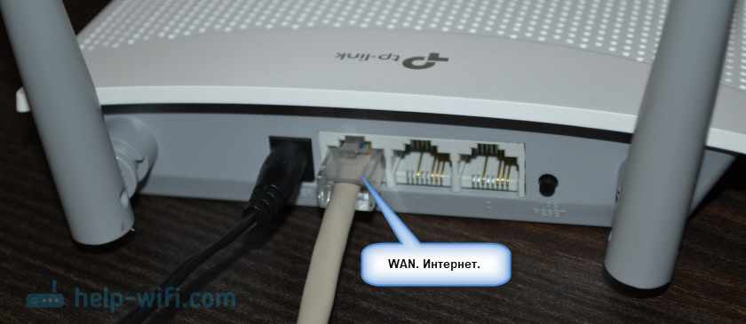 Дальше, в WAN разъем (он синий) нужно подключить интернет. Кабель от вашего провайдера, или от ADSL модема.