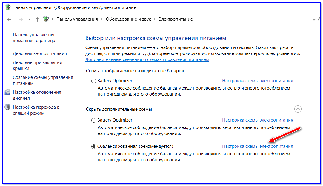 Далее открыть настройки используемой схемы электропитания (кстати, если у ас их несколько — выберите ту, которая помечена как «Высокая производительность»).