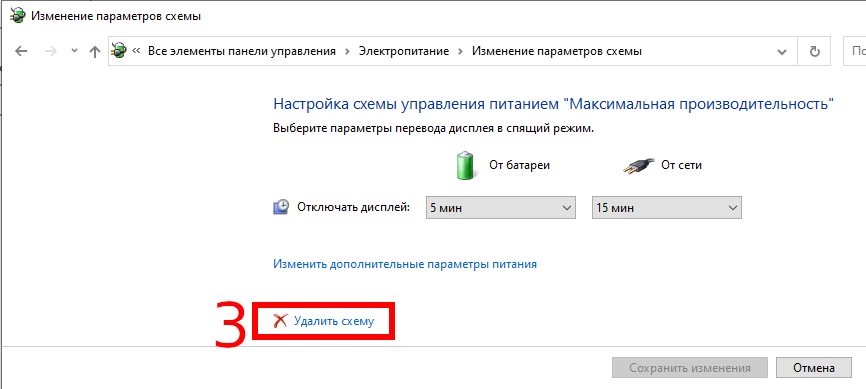 Если вы больше не хотите видеть эту схему электропитания, вы можете удалить ей из списка. Но сначала переключитесь на другой план. Если вы попытаетесь удалить план, который используете в настоящее время, вы можете столкнуться с ошибками.