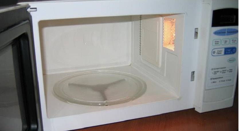 В некоторых моделях микроволновок в последовательную цепь работы включена лампочка, освещающая внутреннее пространство камеры. Соответственно, если она перегорает, то и двигатель перестает действовать, а тарелка не крутится. Распознать проблему проще всего, достаточно проверить, есть ли свет внутри СВЧ печи.