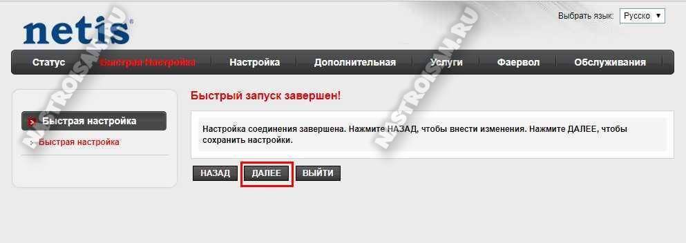 На этом быстрая настройка маршрутизатора завершена. Нажмите кнопку «Далее», чтобы сохранить его настройки.