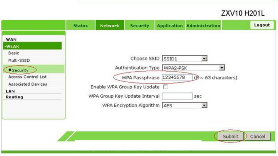Если в меню настроек есть раздел Security, где можно выбрать ключ шифрования WPAPassphrase с длиной от 8 до 32 символов.