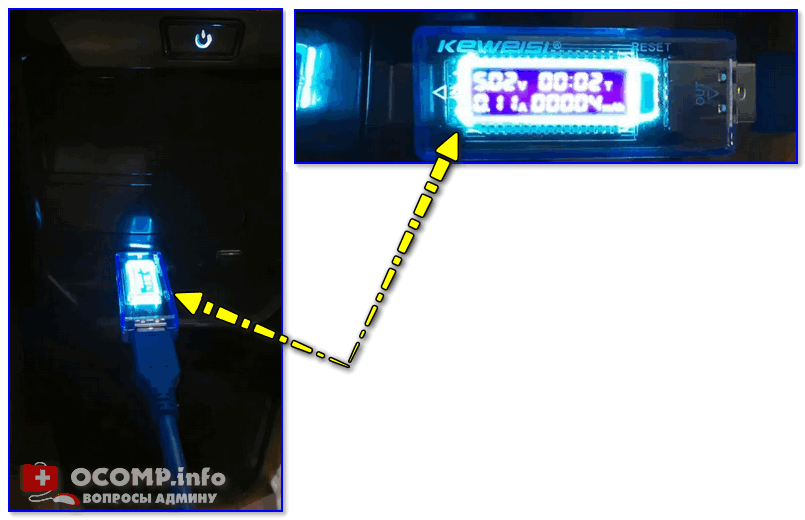 USB-порт работает (цифры на тестере загораются сразу после включения ПК)