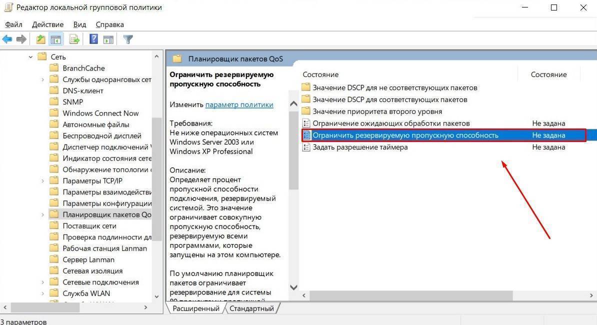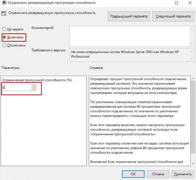 Перейдите в раздел Ограничить резервируемую пропускную способность.