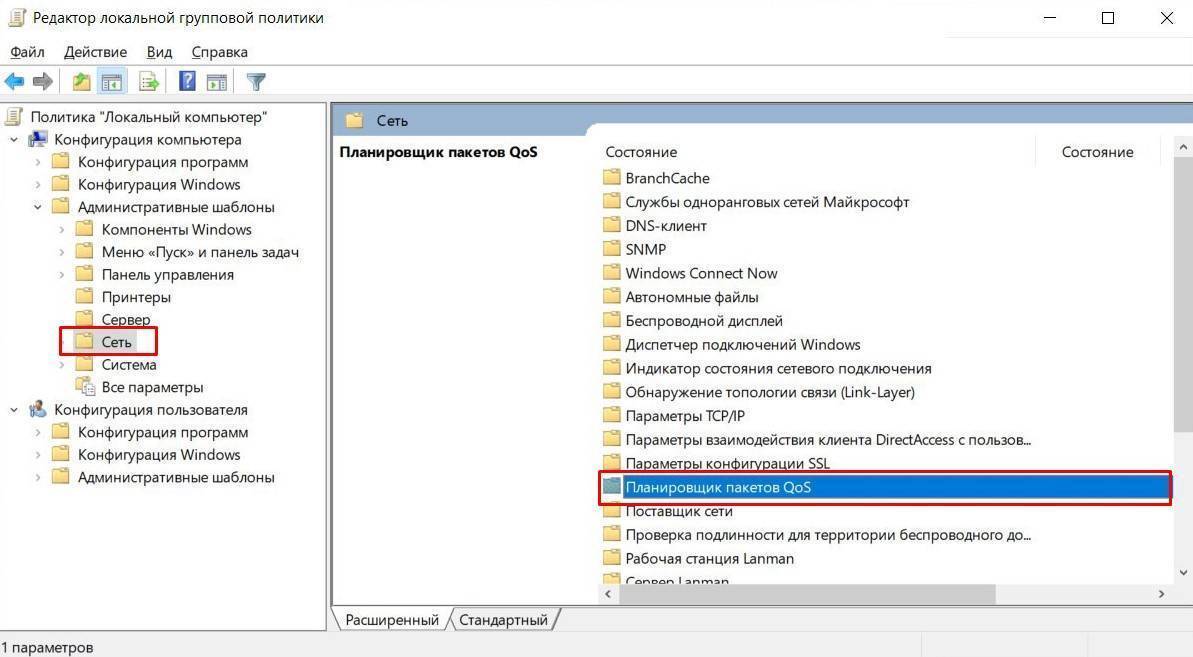 Войдите в Сеть, а там Планировщик пакетов QoS.