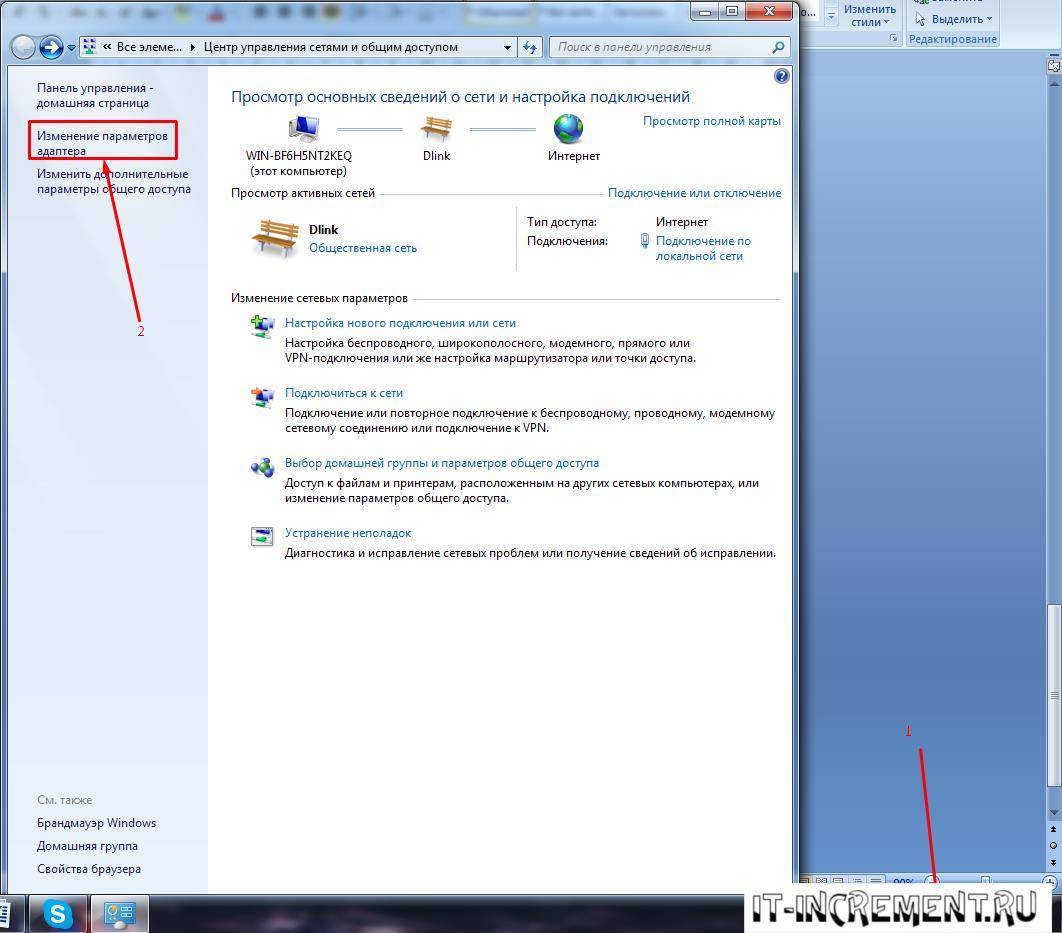 Выше уже был показан значок системного трея, через который необходимо подключать ваш компьютер к одной из найденных точек доступа. Также адаптер может быть отключен системно, чтобы перейти к списку имеющихся подключений, войдите через уже упомянутый значок в «Центр управления» и выбрать пункт об изменениях параметров адаптера.