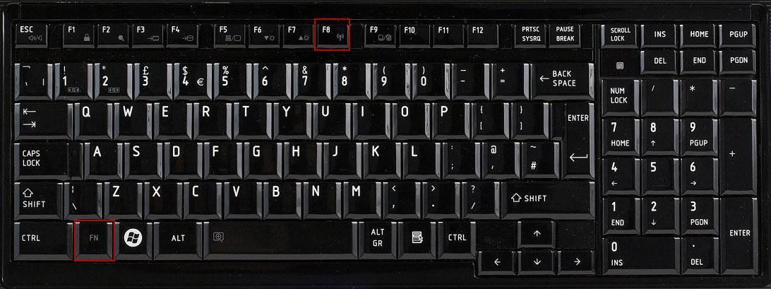 Также ноутбукам присущ общий способ активации и других функций за счет использования кнопки «Fn» и комбинирования ее с другими клавишами. Кнопка под WiFi находится на одной из клавиш – от «F1» до «F12».