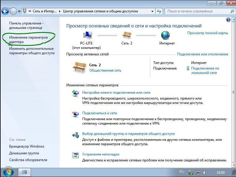 Перейдите к изменениям параметров адаптера, рубрика с которым находится в левом столбце.