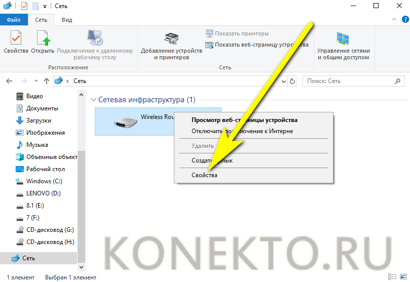 Здесь должен в качестве сетевого устройства находиться и используемый роутер. Щёлкнув по заголовку правой клавишей мыши.
