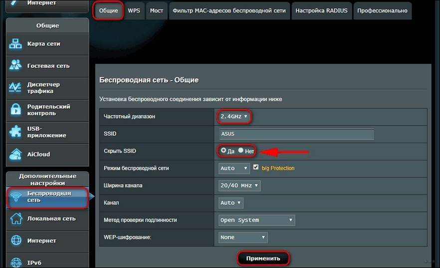 Чаще всего либо не стоит галочка напротив пункта «Включить точку доступа», но иногда может быть включено сокрытие SSID – имени сети, из-за чего ее нельзя увидеть в списках доступных сетей Wi-Fi.