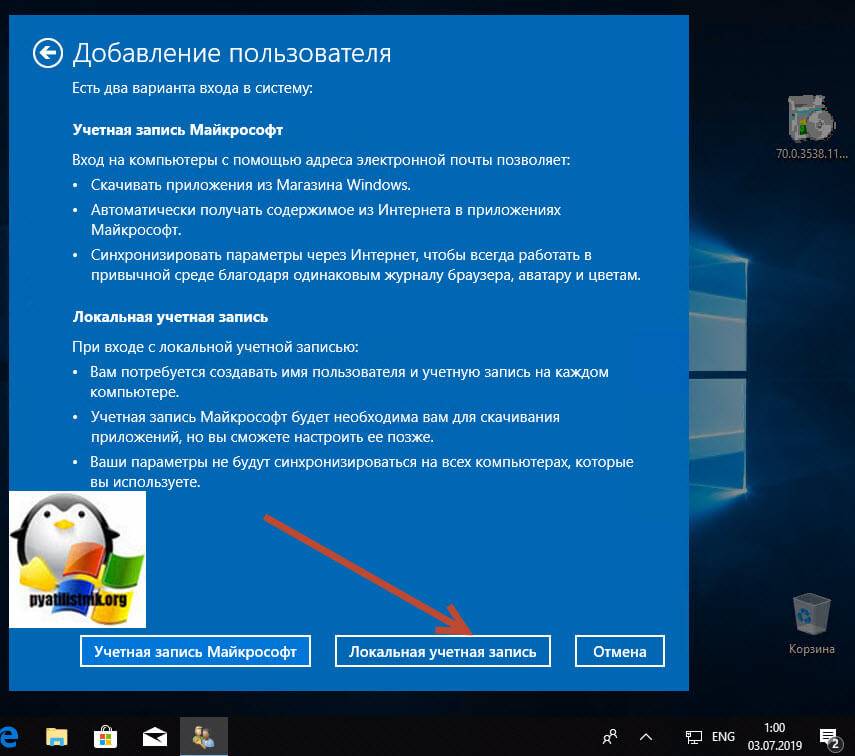 Создаем локальную учетную запись.