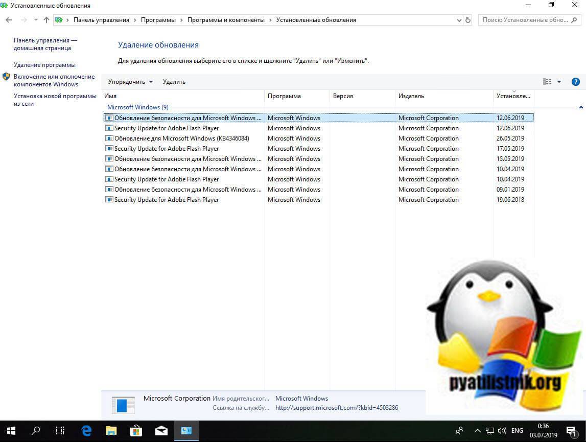 После чего смотрим последние обновления и удаляем их, не забываем потом перезагрузить ваш компьютер и проверить результат.
