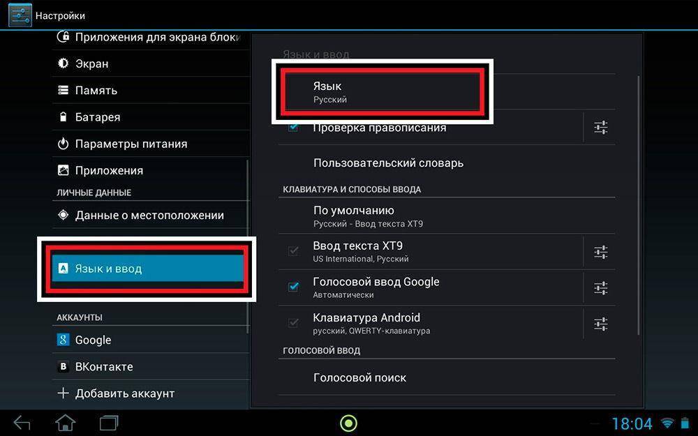3. На следующей странице выберите пункт «Язык и ввод»и нажмите на него.