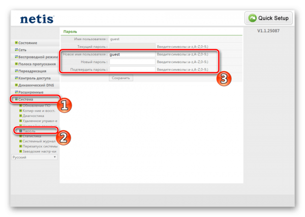 Изменение пароля на настройки Netis