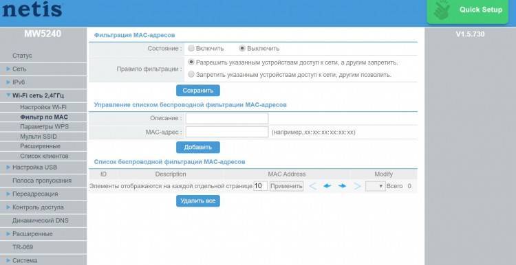 | Управление доступом в интернет | Фильтрация IP- и MAC-адресов, временная фильтрация доменов |