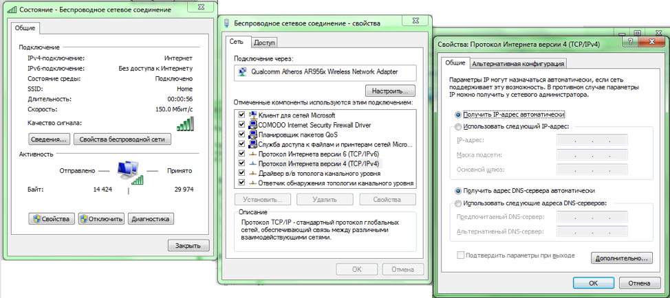 Наконец, иногда в Wi-Fi возникают проблемы сетевой несовместимости устройств. Роутер отказывается соединяться с теми параметрами протокола IPv4, которые предлагает ему Windows. Следует «подчиниться» маршрутизатору и предоставить ему право самостоятельно назначить сетевую конфигурацию. Звучит сложно, однако на практике это лишь одна небольшая настройка.
