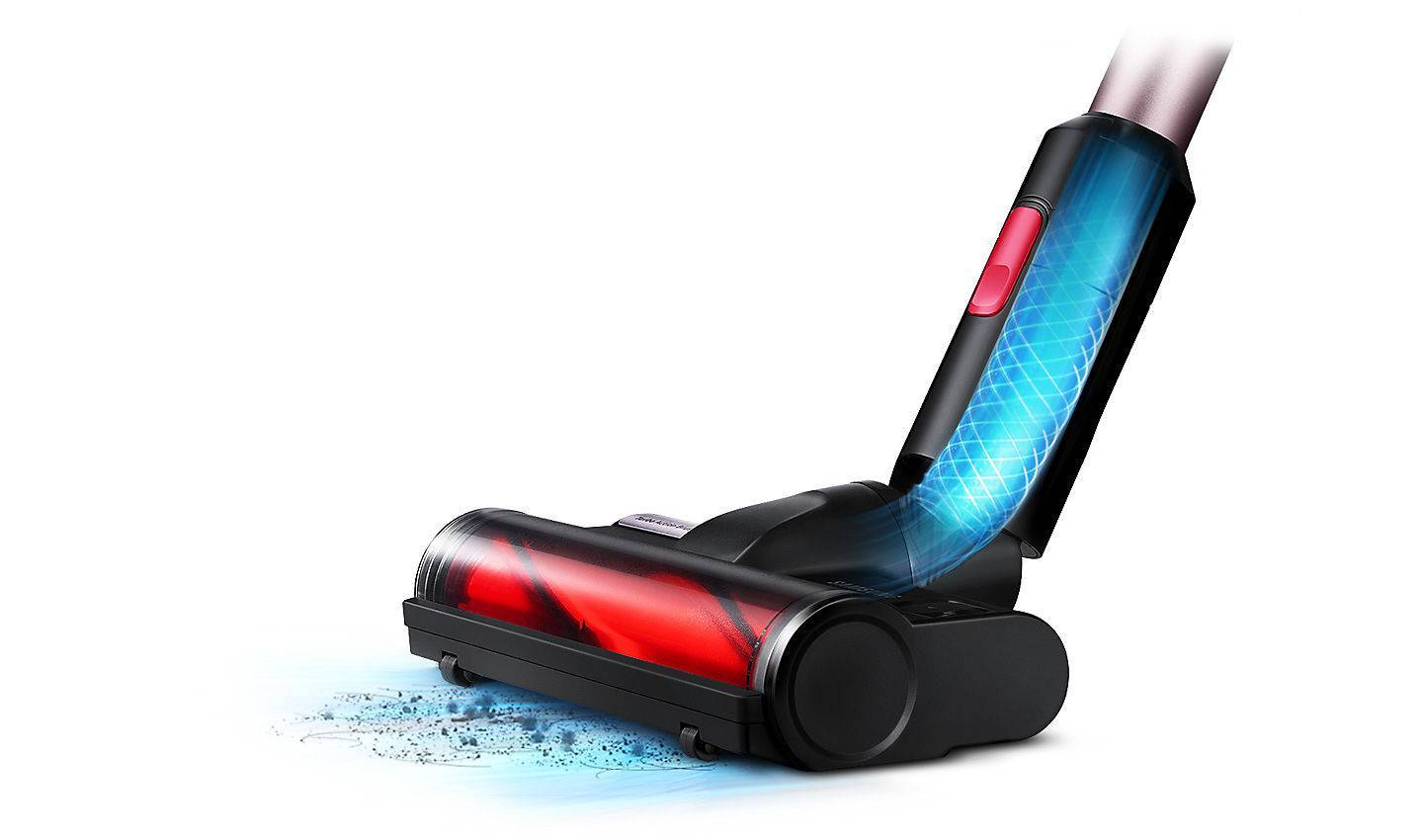 Мощность всасывания у вертикальных беспроводных пылесосов обычно настолько не дотягивает до каких-то приличных цифр, что большинство производителей предпочитают вообще не указывать её. В Samsung VS8000 она достигает 150 Вт — это впечатляющий показатель, который приближается к параметрам больших мощных пылесосов, работающих от сети. Он стал возможен благодаря инверторному цифровому мотору, гарантия на который 10 лет.