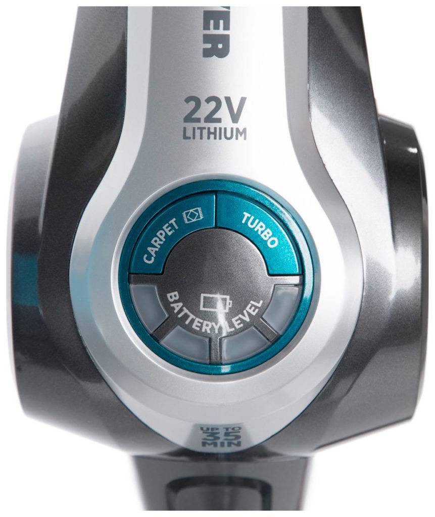 Спереди, под логотипом HOOVER расположена кнопка «Турбо», включив которую увеличивается мощность всасывания. Расположение не самое удобное, однако это позволило избежать случайного переключения режимов при уборке.