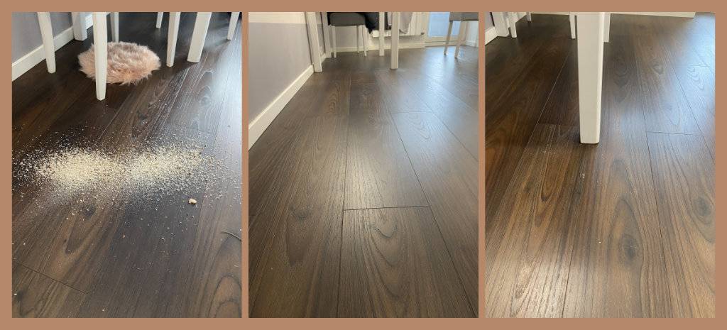 На снимках хорошо видно, что на полу остались как иголки, так и опилки. Обычный пылесос справился бы куда лучше и быстрее. Но для этого мне пришлось бы отложить написание вступления для этой статьи и взять его в руки. Поэтому подчеркиваю: робот хорош для ежедневной уборки, но не для полноценной.