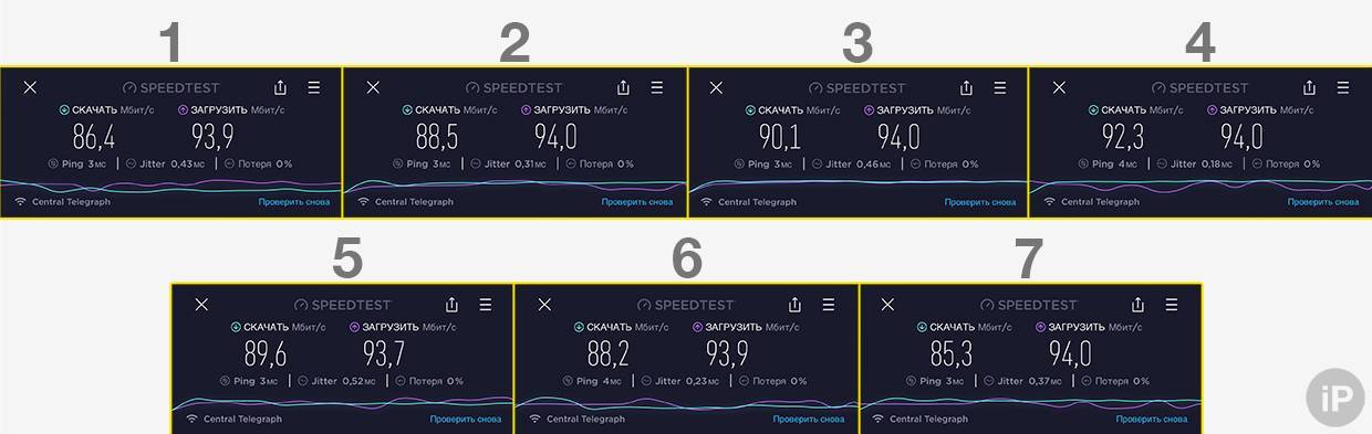Домашний тест провёл во всех комнатах квартиры. У меня интересная ситуация, потому что роутер из-за особенностей проводки находится в самой дальней комнате по отношению ко всей остальной площади.