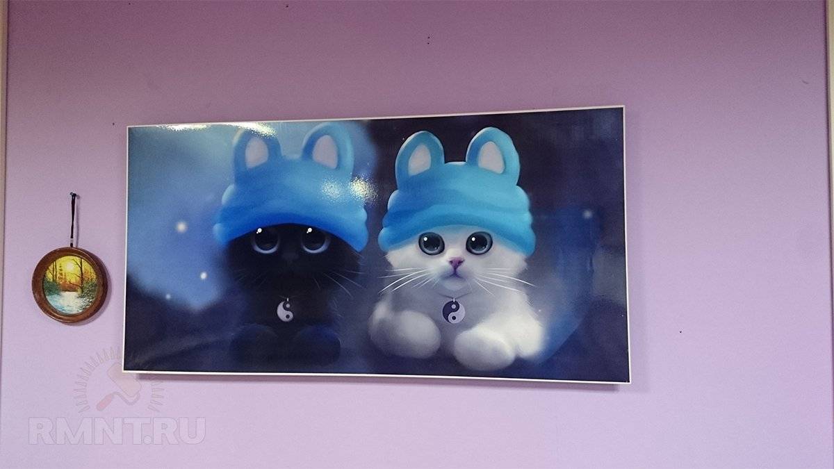 заранее уточнить, куда размещать панно — идеально использовать такой прибор с тематической картинкой для ванной комнаты или на кухне, а также в спальне рядом с кроватью — для прогрева зоны понадобится не менее часа;