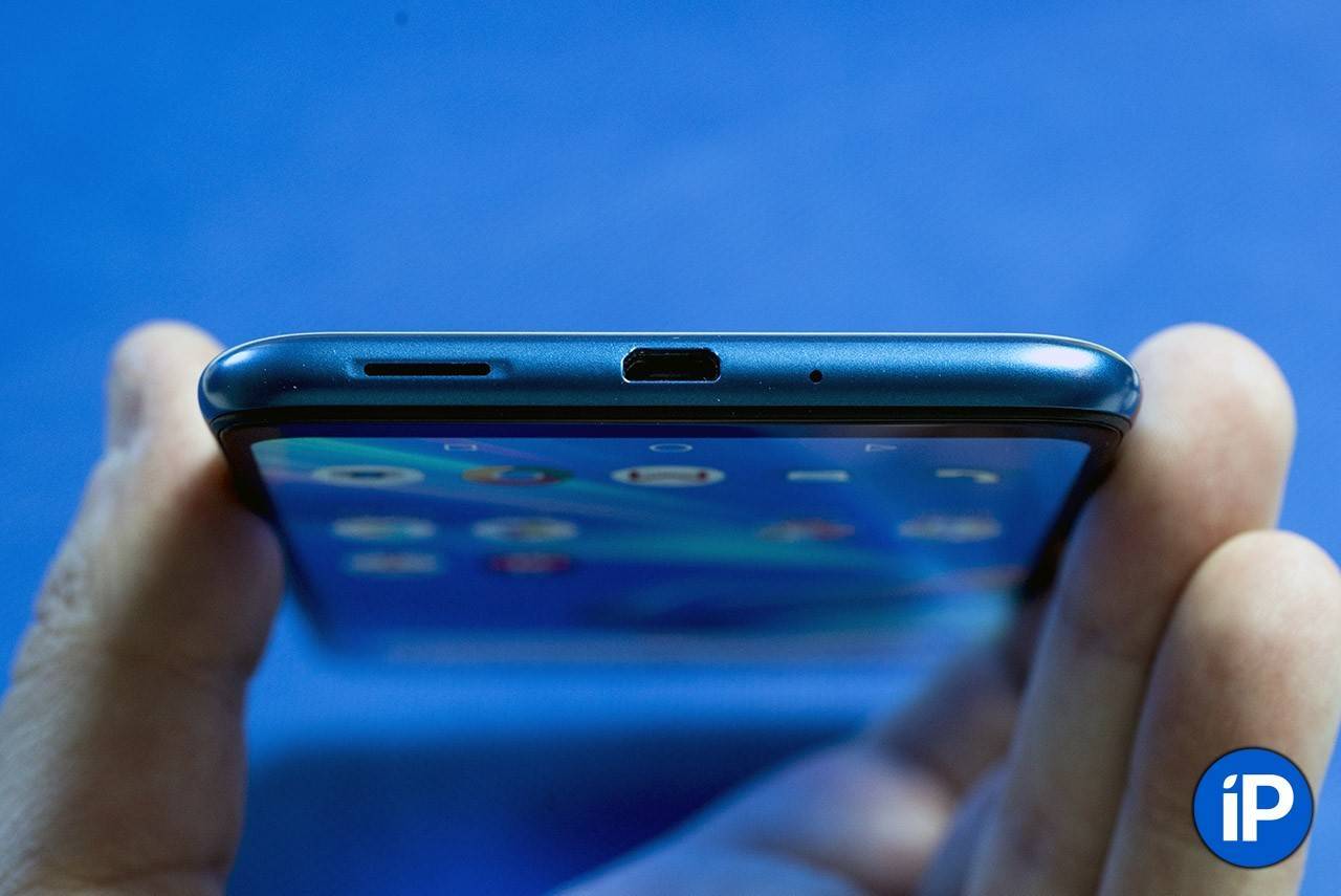 Снизу расположен разъём micro USB и отверстие второго микрофона, а на левом торце — лоток для SIM-карт формата micro и nano.