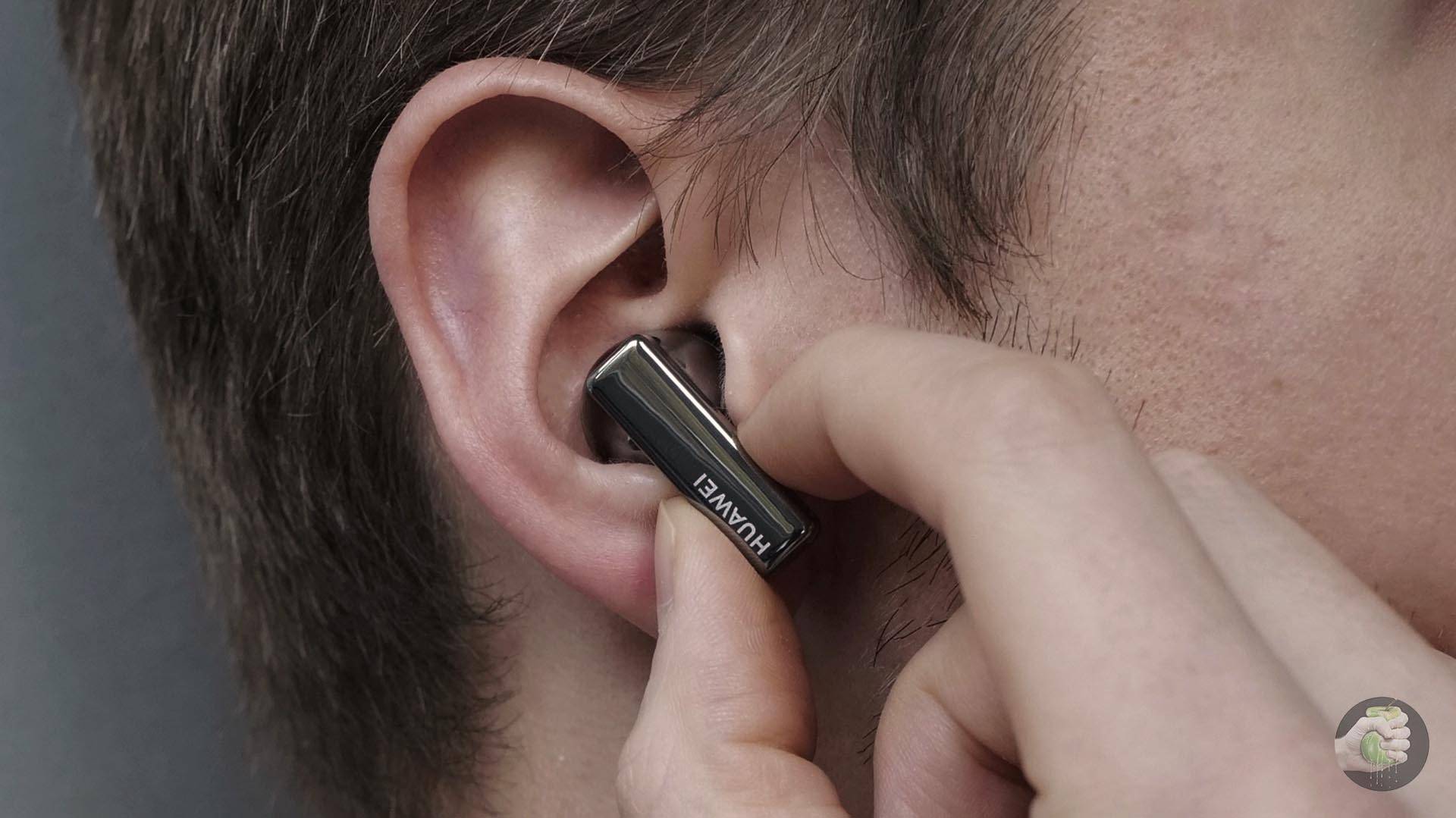 Самый большой недостаток Huawei FreeBuds Pro в эргономике: из кейса их очень трудно достать. Логичнее всего хвататься за внутренний микрофон (чёрный круг рядом с амбушюром) и внешнюю плоскую грань.