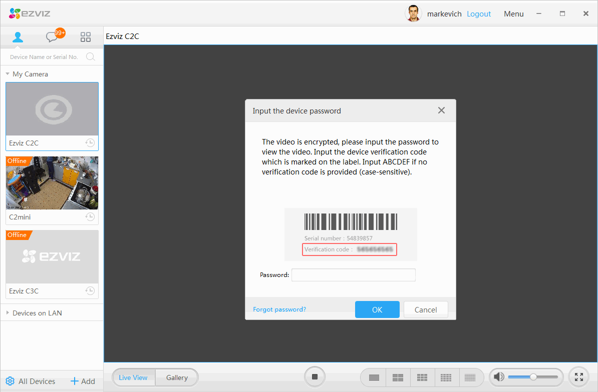 11 Вводим Device Verification Code «Проверочный код устройства». Проверочный код находится на наклейке с наименованием устройства расположенной на самом устройстве и упаковке. Для устройств в которых изначально не было поддержки облачного сервиса ezviz вводим код ABCDEF. Повторяем для каждой видеокамеры, сверяя код с серийным номером устройства. Если по какой либо причине Вы не можете узнать код, то при наличии знаний linux и навыков работы с telnet можете воспользоваться этой инструкцией.
