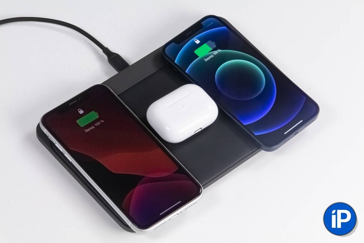 Nomad Base Station заряжает всё: iPhone, AirPods, Android-смартфоны и любые другие устройства с поддержкой Qi. Одно устройство будет заряжаться с мощностью до 10 Вт, два одновременно — только при 7,5 Вт.