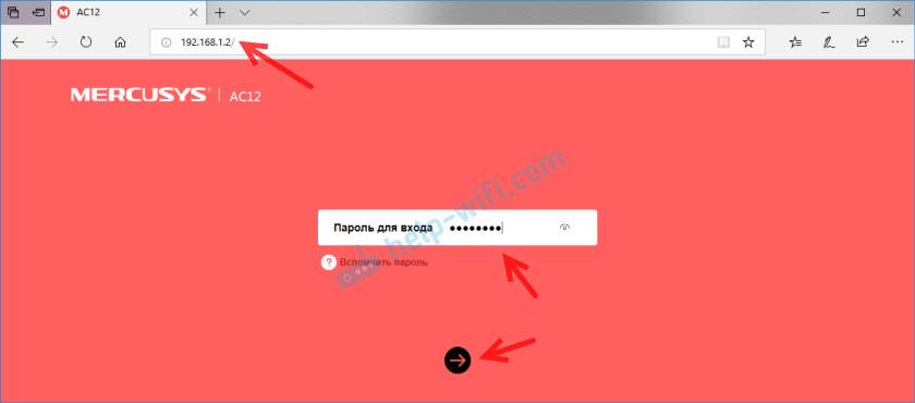 - Если наш Mercusys уже был настроен, то он попросит вас указать пароль администратора для входа в настройки. Если вы знаете пароль, то укажите. Откроется страница с настройками. Если не знаете – делайте сброс настроек.