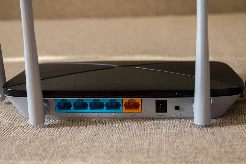 С обратной стороны, как обычно, размещены все необходимые порты и разъемы: четыре LAN-порта, один WAN-порт, разъем питания и кнопка сброса.