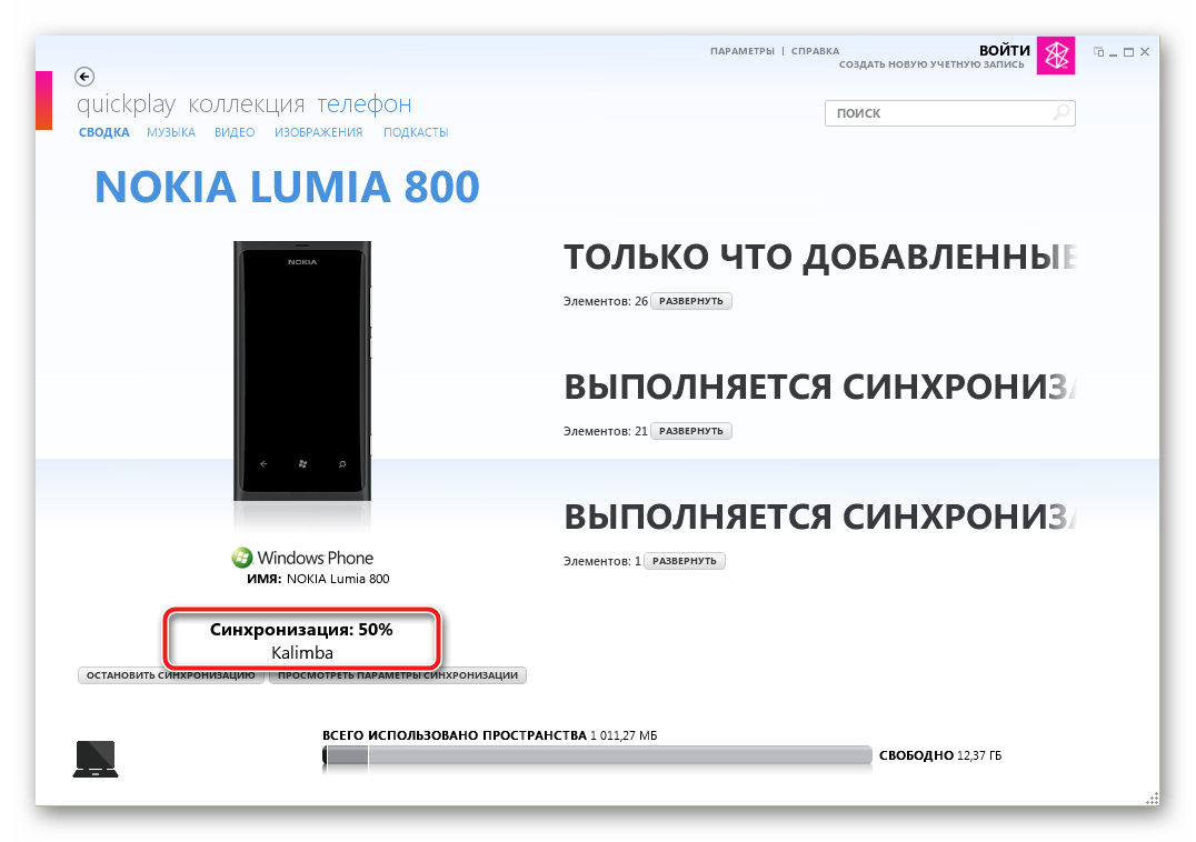 Запускаем приложение и подключаем Nokia Lumia 800 к ЮСБ-порту ПК.