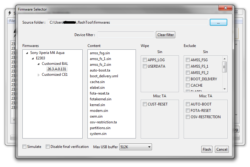 Выберите режим «Режим вспышки», и нажмите «ОК». В новом окне отобразится список доступных программ для установки (раздел «Прошивки».) Он будет классифицирован по моделям телефонов — в вашем случае, вероятно, будет только одно программное обеспечение для Z1 Compact. Разверните папки и выберите это программное обеспечение 14.6.A.1.236 / R4D для установки, затем нажмите «Flash».