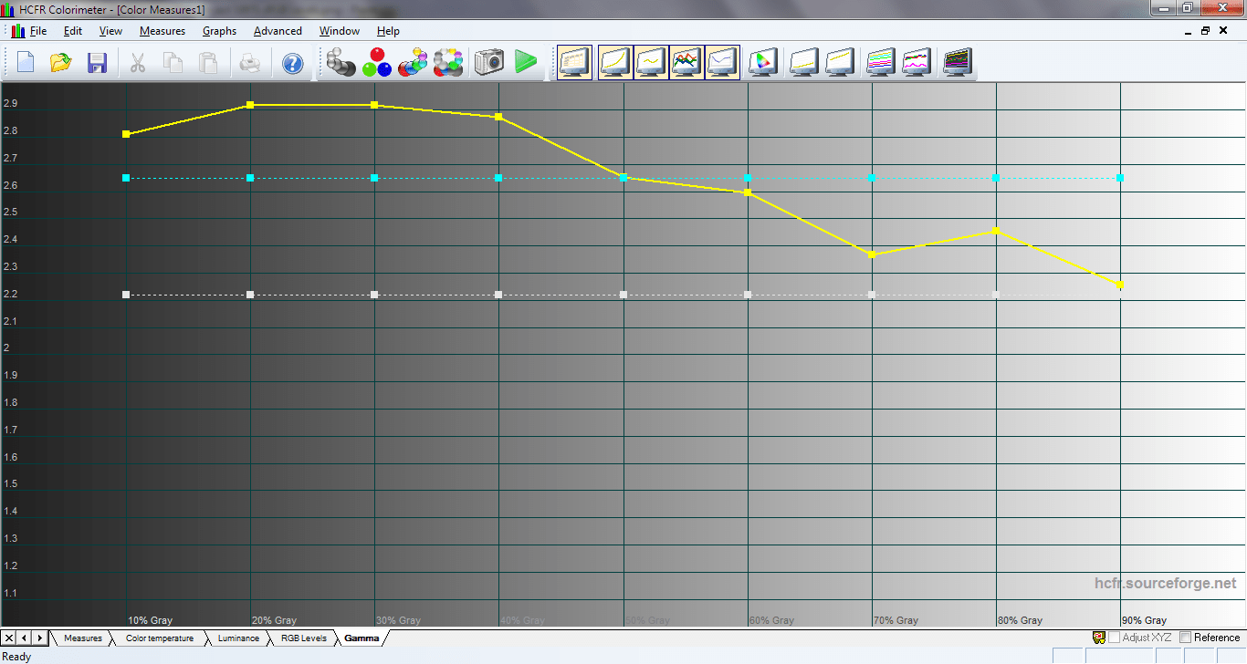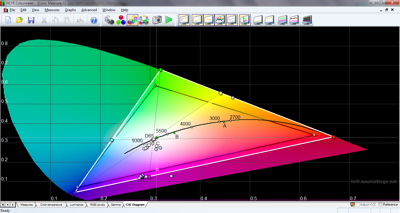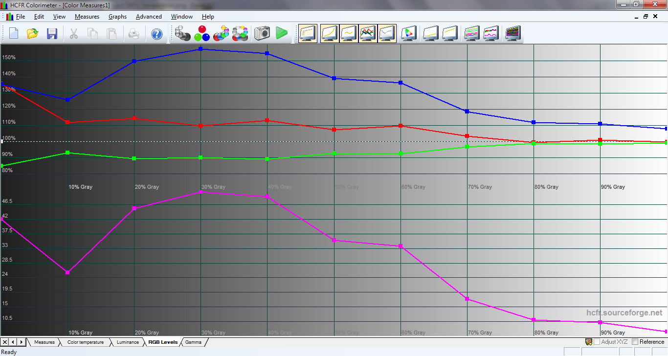 Заводская калибровка говорит о массе проблем экрана, в частности это касается слишком завышенной цветовой температуры и значения гамма-кривой. Завышенная цветовая температура делает изображение холодным. При желании, пользователь может немного изменить этот параметр, регулируя ползунки красного, зеленого или синего канала, но добиться заметного отличия, не говоря уже о хороших результатах, нам не удалось. Цветовой охват превышает пространство sRGB, что характерно для экранов последних моделей Sony.