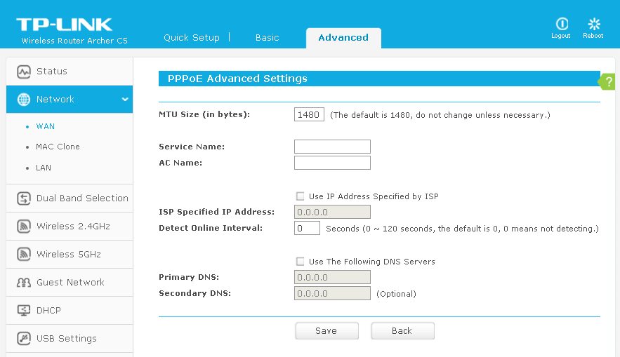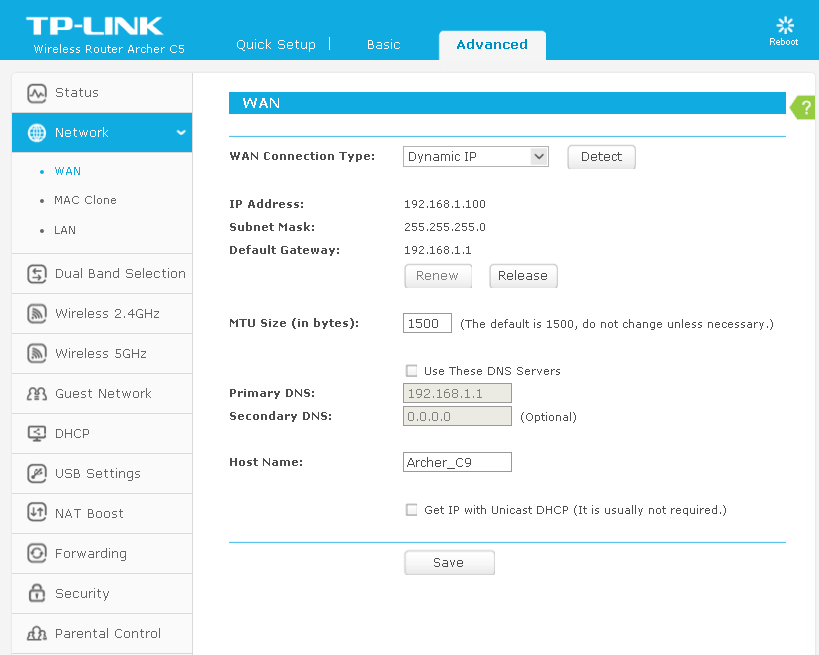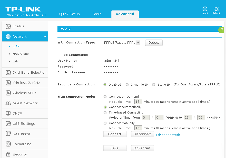 Итак, перейдем к расширенной настройке интернета и локальной сети на роутере TP-Link AC1200.