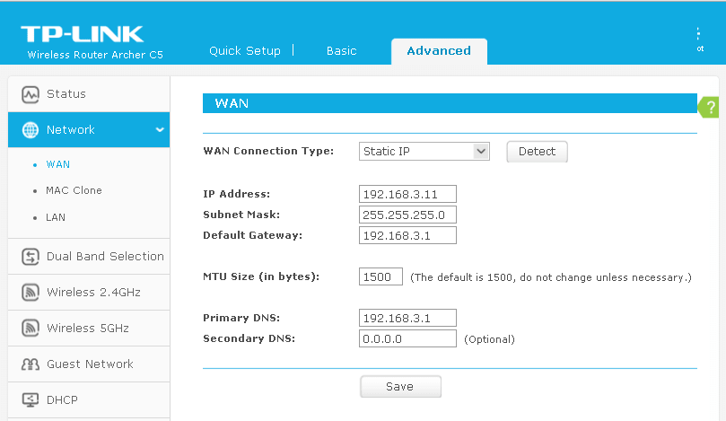 В завершении настроек роутера TP-Link AC1200 нажмите на кнопку «SAVE» (Сохранить).
